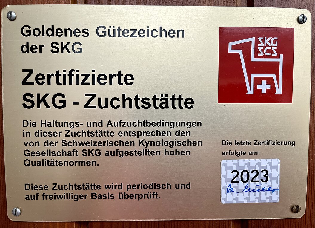 29. August 2023: Zuchtstättenkontrolle durch Frau M. Müller-Mächler, GGZ SKG. Es war alles in Bester Ordnung und wir erhielten erneut die Beuurteilung “vorzüglich”. Wir freuen uns über diese Bewertung!